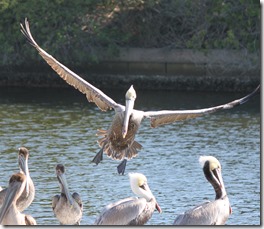 While Craig was working with the inspector, I walked down the dock to watch the dozens of pelicans that roost in the mangrove trees across from the marina. I discovered that the reason for their constant presence was the fresh-off-the-boat fish store just opposite. They are such entertaining birds.